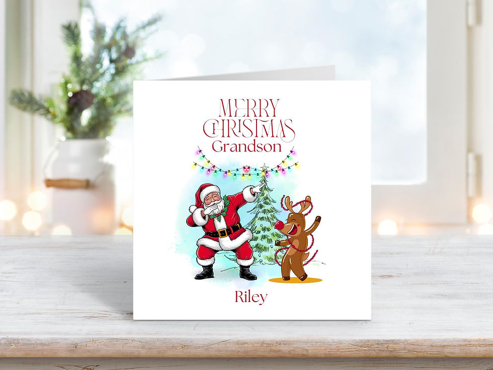 Personalised Grandson Christmas Card – Santa and Reindeer Design